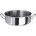 flache Form, aus Edelstahl 18/10, hochglänzend, mit Kaltgriffen und Schüttrand, 8 mm Sandwichboden, induktionsgeeignet, schwere Qualität