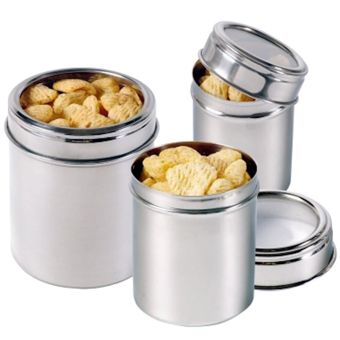 aus Edelstahl 18/10, hochglänzend, mit dichtschließendem, geruchs- und feuchtigkeitssicheren Steckdeckel mit Sichtfenster aus Acryl, Deckel nicht spülmaschinengeeignet