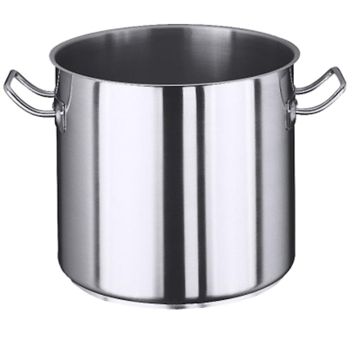 aus Edelstahl 18/10, matt poliert, mit Kaltgriffen und Schüttrand, 7 mm Sandwichboden, induktionsgeeignet bis einschließlich Ø 50 cm, schwere Qualität