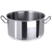 aus Edelstahl 18/10, hochglänzend, mit Kaltgriffen und Schüttrand, 8 mm Sandwichboden, schwere Qualität