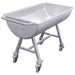 aus 1,5 mm starkem Edelstahl 18/10, Muldenkörper fugenlos, Untergestell aus Edelstahl 18/10, 1¼""-Ablauf mit Schraubverschluss, Muldentiefe des Beckens: 30 cm, mit zwei ungelagerten Rädern Ø 125 x 30 mm aus Polypropylen und zwei Gleitfüßen