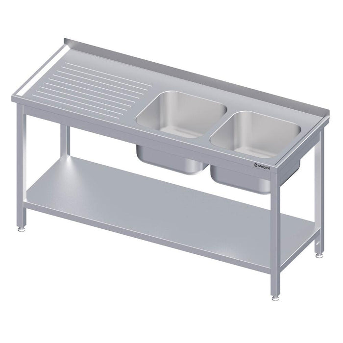 Spültisch mit Grundboden, mit Aufkantung, mit zwei Becken