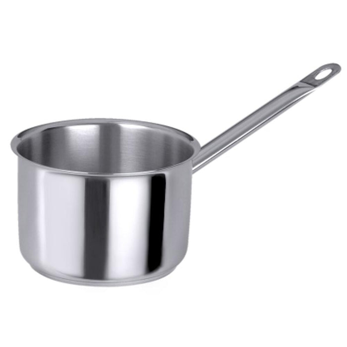aus Edelstahl 18/10, hochglänzend, mit Rohrgriff und Schüttrand, 8 mm Sandwichboden, induktionsgeeignet, schwere Qualität